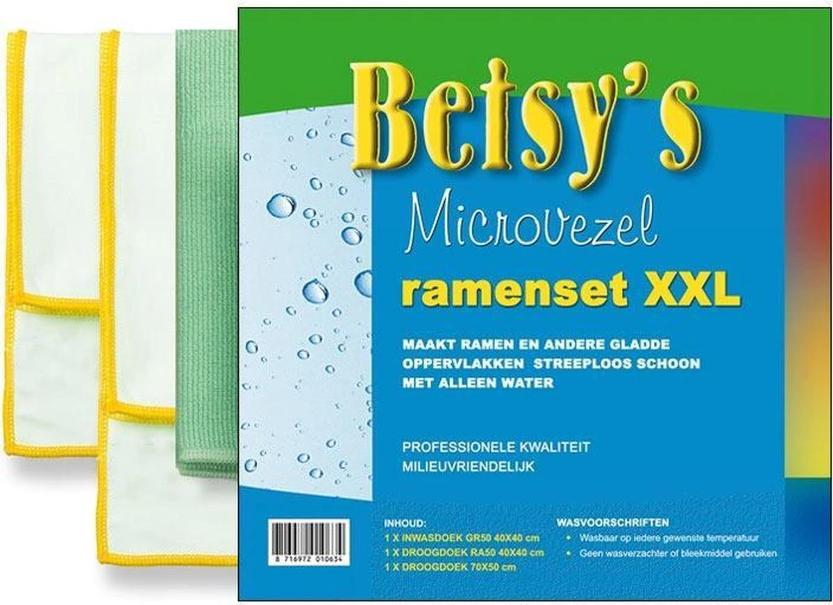 Betsy’s Microvezel Ramenset XXL maakt ramen en andere gladde opervlakten streeploos schoon